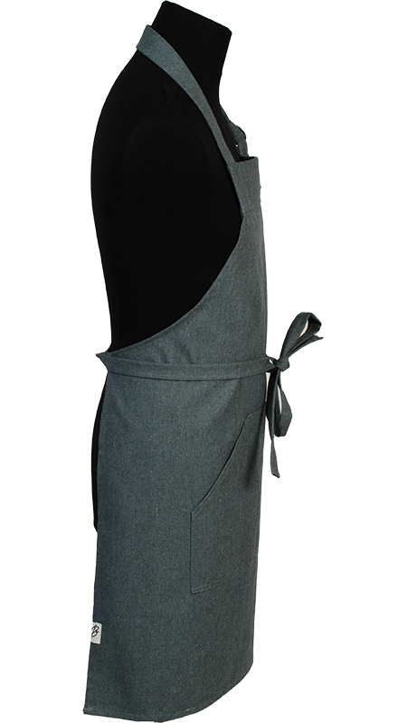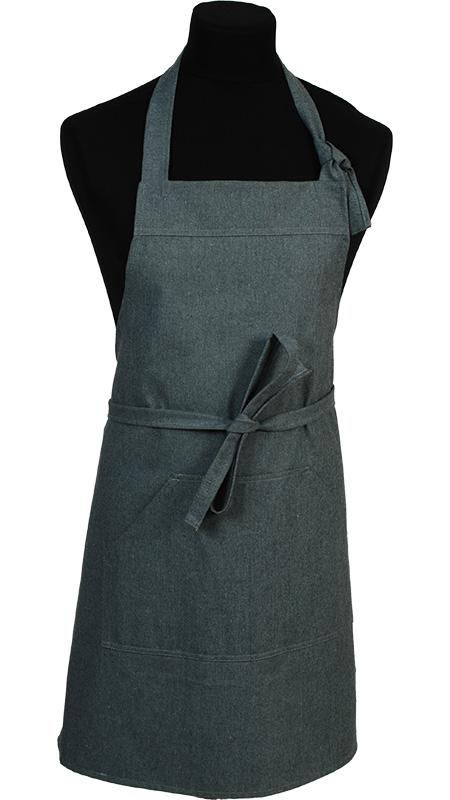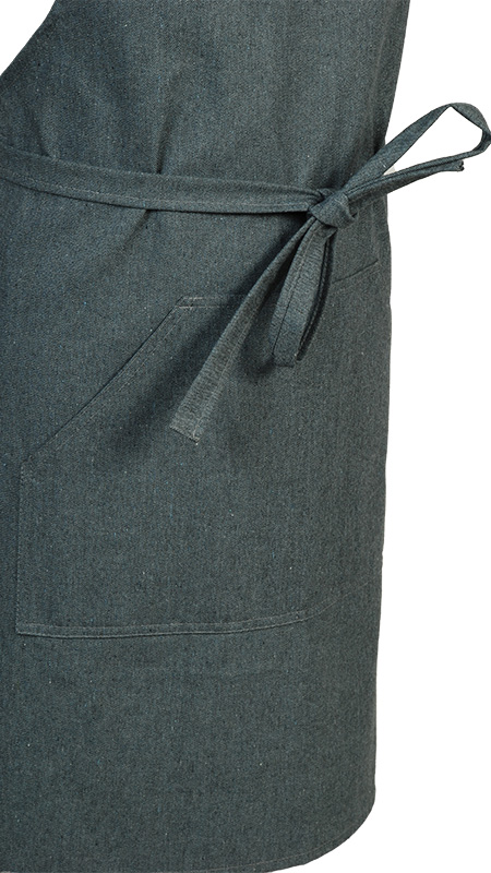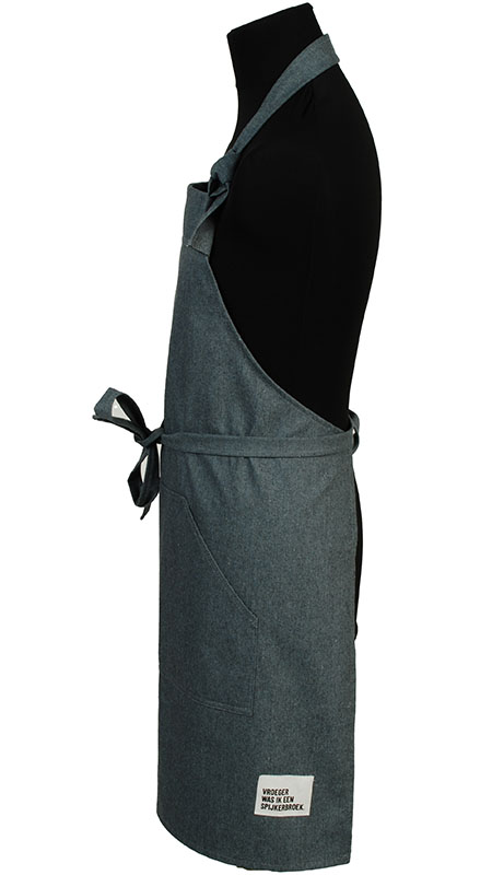 Vroeger was ik een spijkerbroek! Bewust duurzame denim van recyclede spijkerbroeken. Deze Bewust duurzame denim halterschort is voorzien van een verstelbare nekband die door de lus op de perfecte lengte geknoopt kan worden. Het halterschort is voorzien van een steekzak en heeft lange strikbanden waardoor het schort voor ook gestrikt kan worden. De bewust duurzame denim is een 280 grams denim gemaakt van 60% recyclede spijkerbroeken en 40% recyclede polyester. Omdat elke batch van denim en PET uniek is, krijgt ieder schort zijn eigen verhaal. Zo wordt ieder schort een limited edition.
